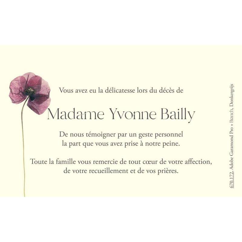 Carte de pour remercier votre entourage du soutien apporté après le décès d'un proche. Carte de remerciement décès de couleur crème, format 135 x 85 mm, illustrée d'un coquelicot pourpre.